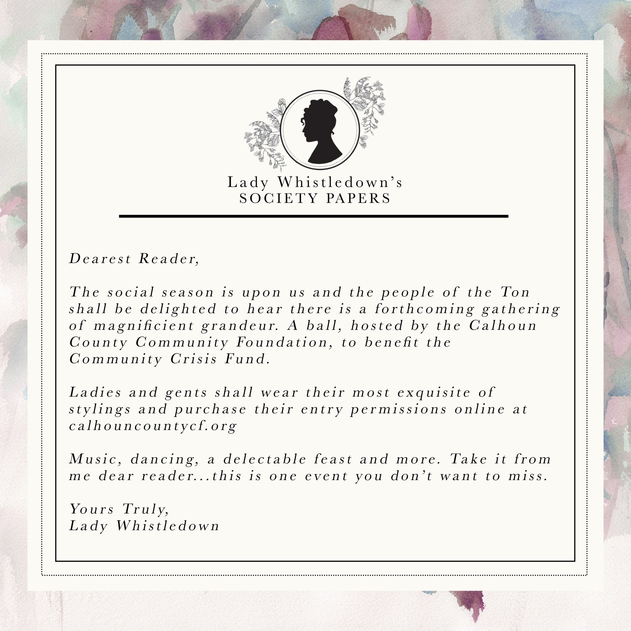 Additional details and tickets are available online at www.calhouncountycf.org/gala