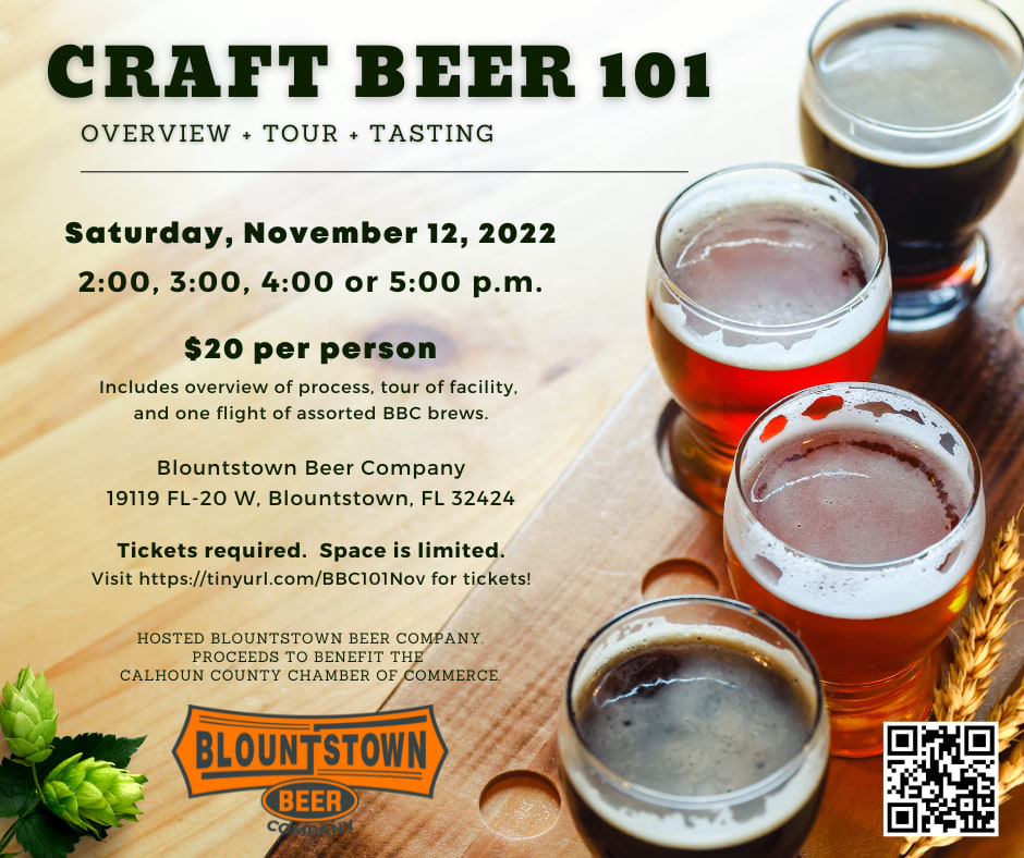 Blountstown Beer Company (BBC) is offering a Craft Beer 101 experience to introduce guests to craft beer. The cost is $20 per person, and will include an overview of the beer-making process, a tour of the BBC facility, and one flight of assorted BBC brews.