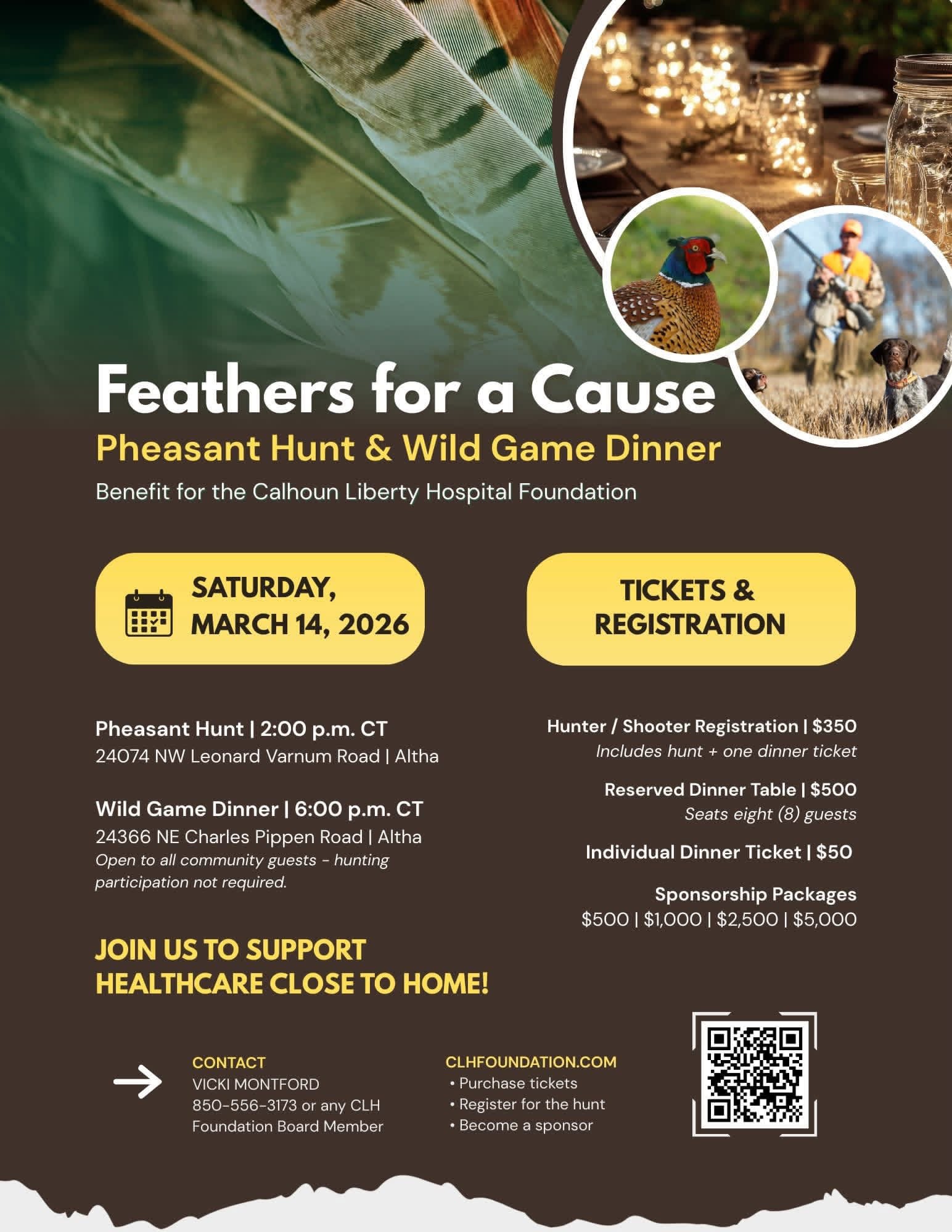 Join us for our inaugural Pheasant Hunt & Wild Game Dinner benefiting the Calhoun Liberty Hospital Foundation.