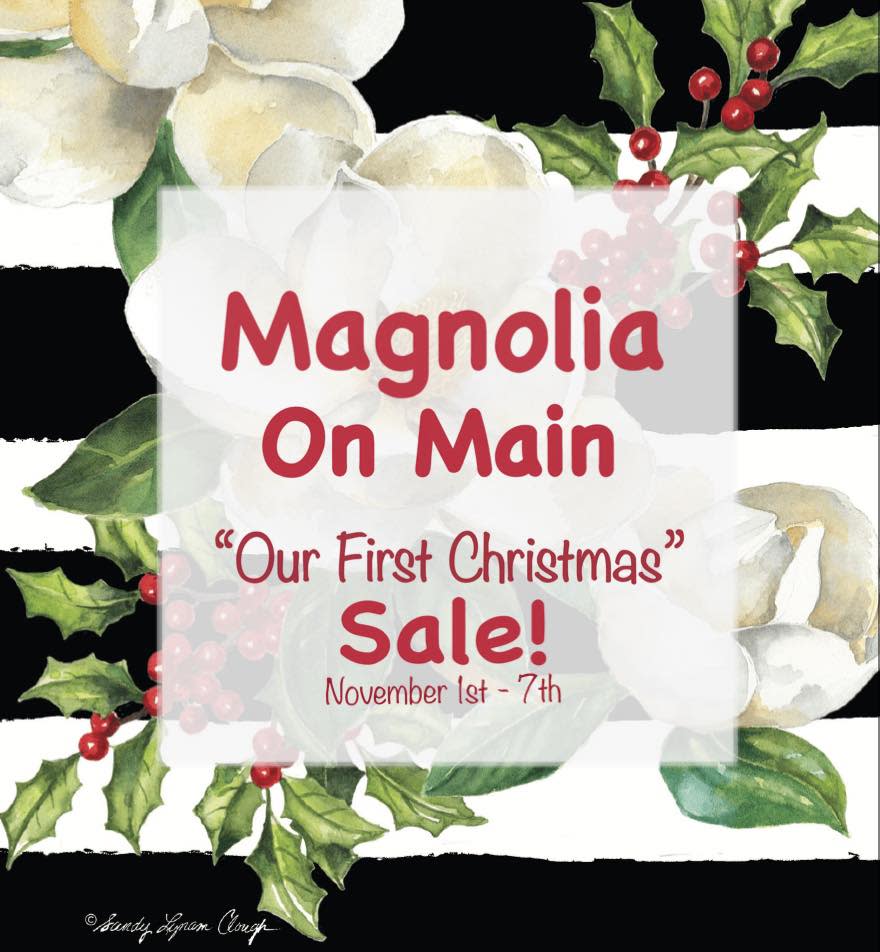November 1st we will start changing over to our Christmas decor. This will be Magnolia On Main’s first Christmas, and we would like to invite the community to join us & help out! We will have a basket set out full of ornaments & for everyone who comes to put one of the ornaments on our tree, they will receive 10% off in the store and their name will be entered into a giveaway for a free item at the end of the week! There will also be a sale rack in front of the shop! We look forward to see everyone 🎄❤️